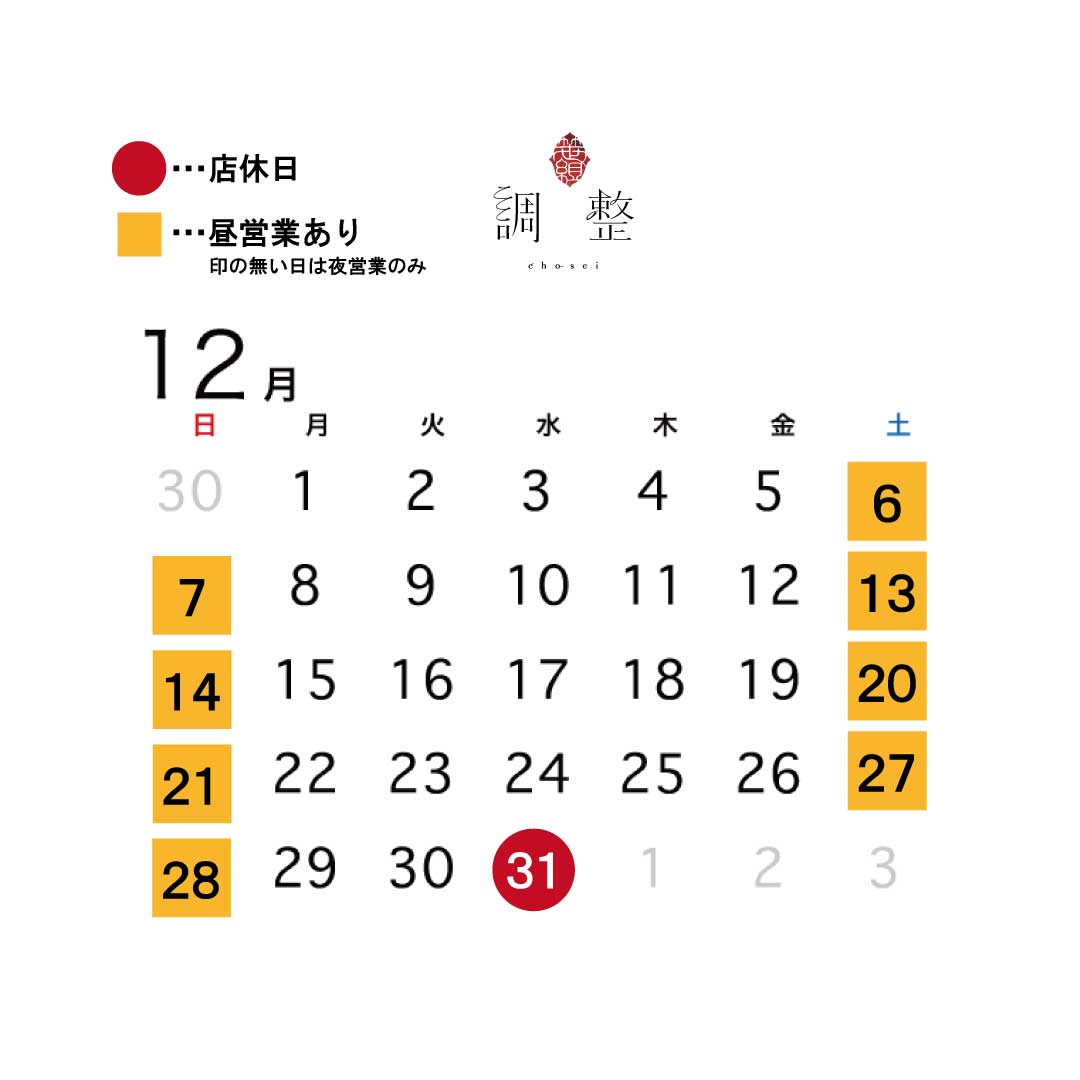 12月 1月 営業日のお知らせ