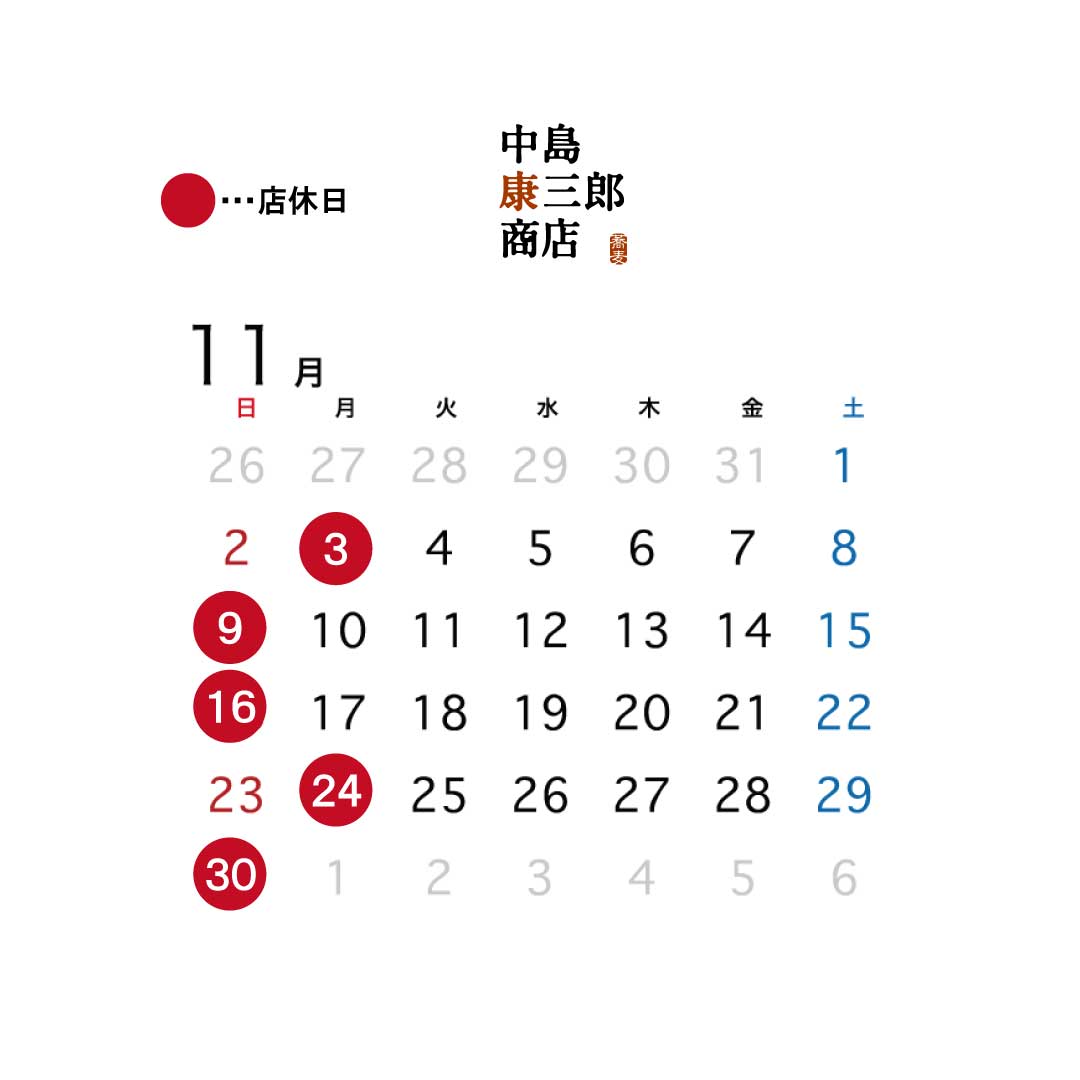 11月 営業日のお知らせ