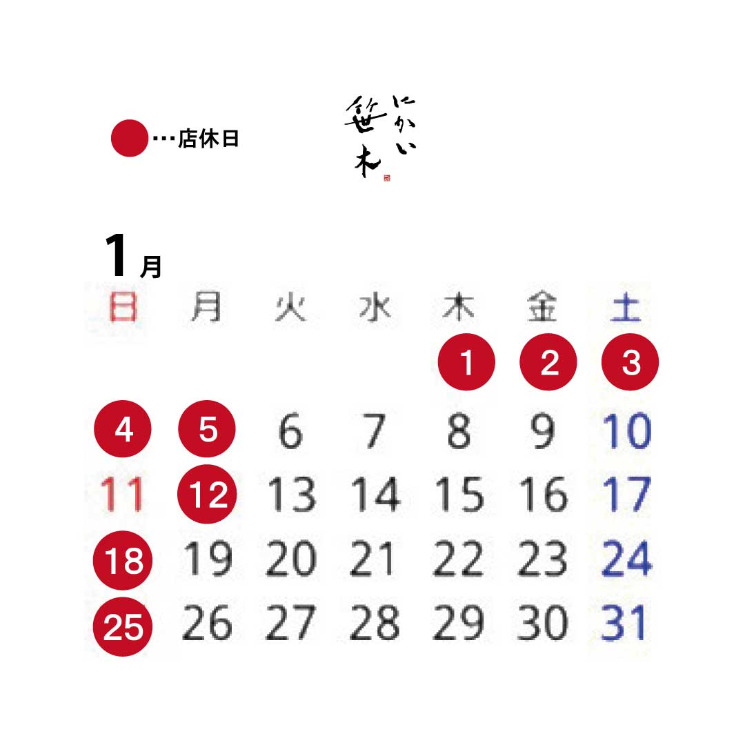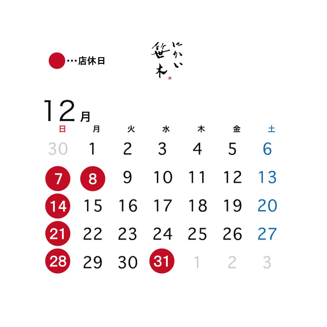 12月 1月 営業日のお知らせ